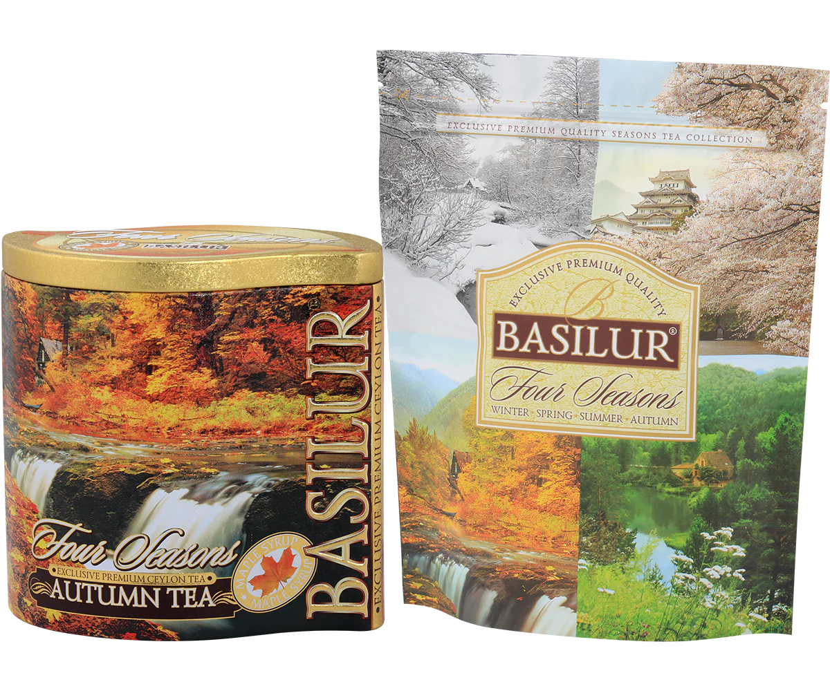 As beautiful Maple leaves turn brilliant red and fiery yellow in Fall, Basilur Four Seasons swirl into āAutumn Teaā with worldās finest Ceylon black tea, complimented with a tantalizing taste of Maple. Together, they release a calming and soothing aroma and smooth, silky taste reminiscent of a delicious feast.